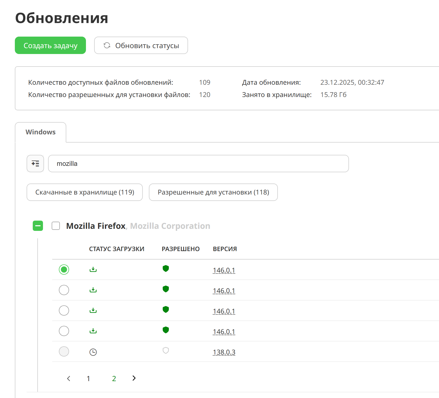 Обновление ОС и установленного ПО для linux и windows активов из единой консоли.